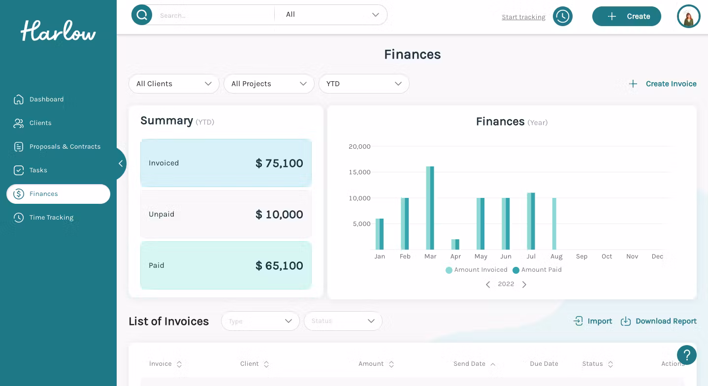 8. Harlow | La suite « tout-en-un » pensée uniquement pour les solopreneurs. | Essai 14j | Dès $17.42 / mois |