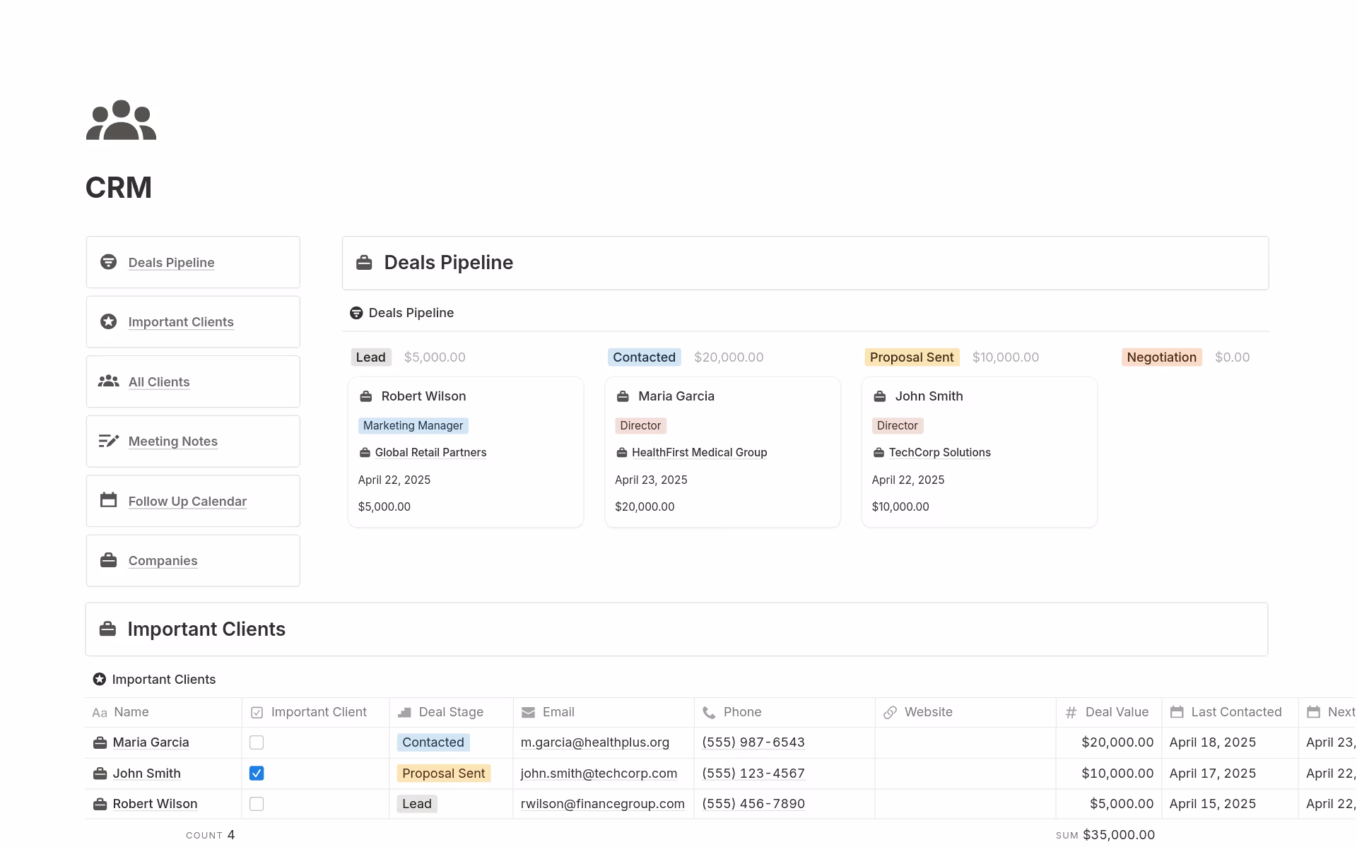 - Clarté du pipeline : Une vue Kanban impeccable qui permet de savoir immédiatement quoi faire et sur qui se concentrer.