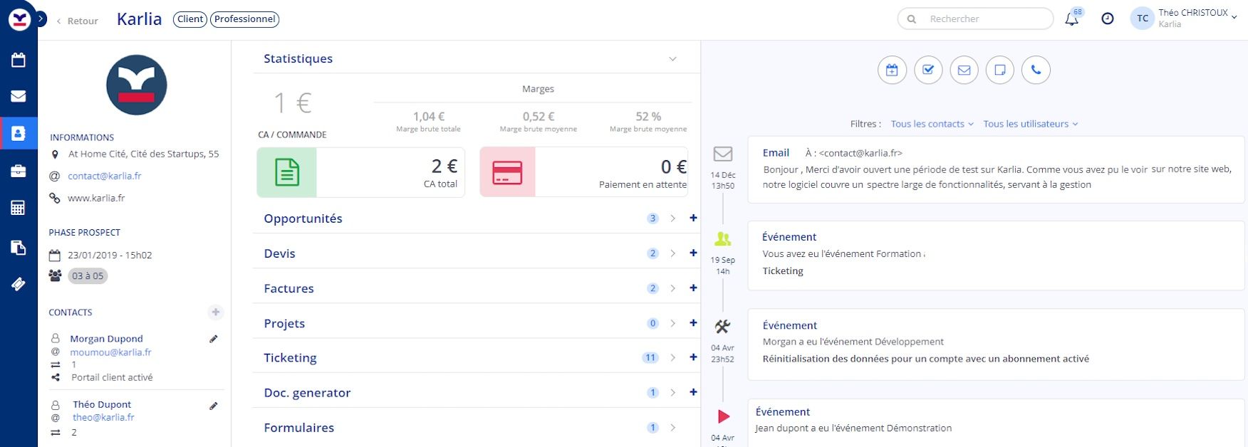 Dans ces cas, le plan gratuit te fournit l’essentiel : gestion des contacts, journalisation des activités et visualisation du pipeline. C’est le strict minimum pour passer au professionnalisme.