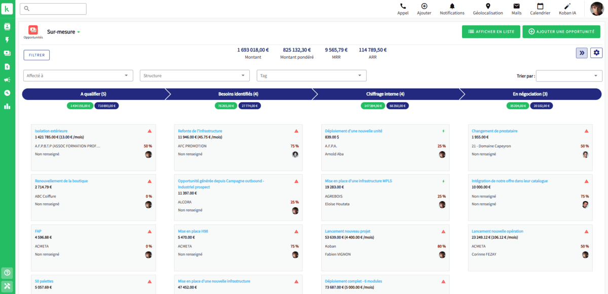- Pipeline en un coup d’œil : Une visibilité inégalée sur l’avancement des deals, réduisant le risque qu’une opportunité soit oubliée.