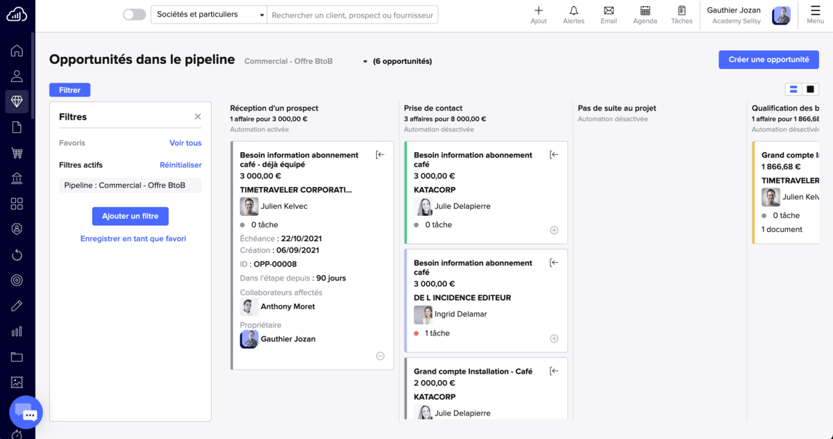 - Pipeline de vente intuitif en drag and drop