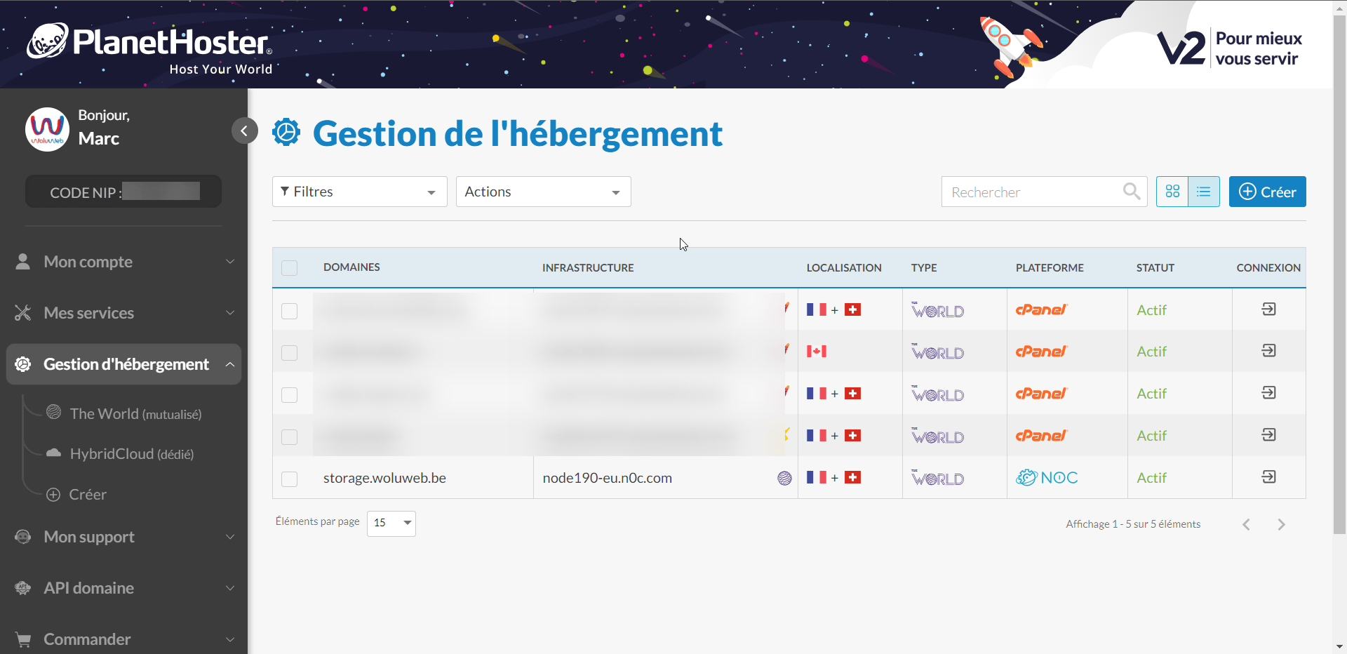 En incluant N0C par défaut, PlanetHoster supprime le coût de la licence (qui pèse lourd chez les concurrents) et te permet de garder une main totale sur ta plateforme, sans dépendre d’une solution tierce obsolète ou coûteuse.